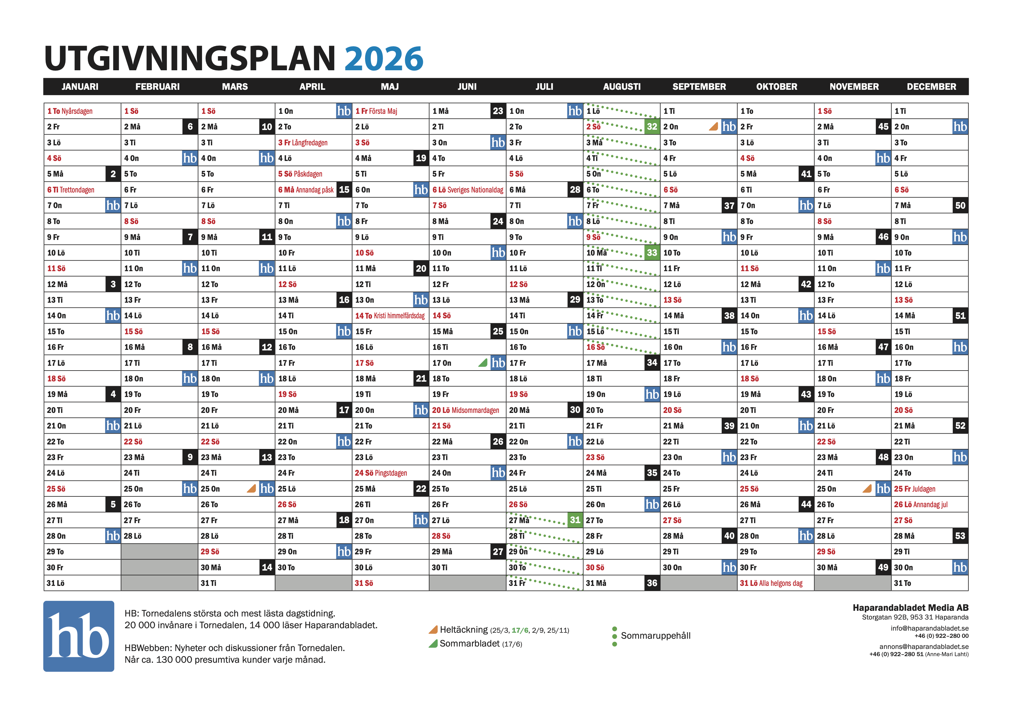 HB Tornedalens största och mest lästa dagstidning. 20.000 invånare i Tornedalen, 14.000 läser Haparandabladet.